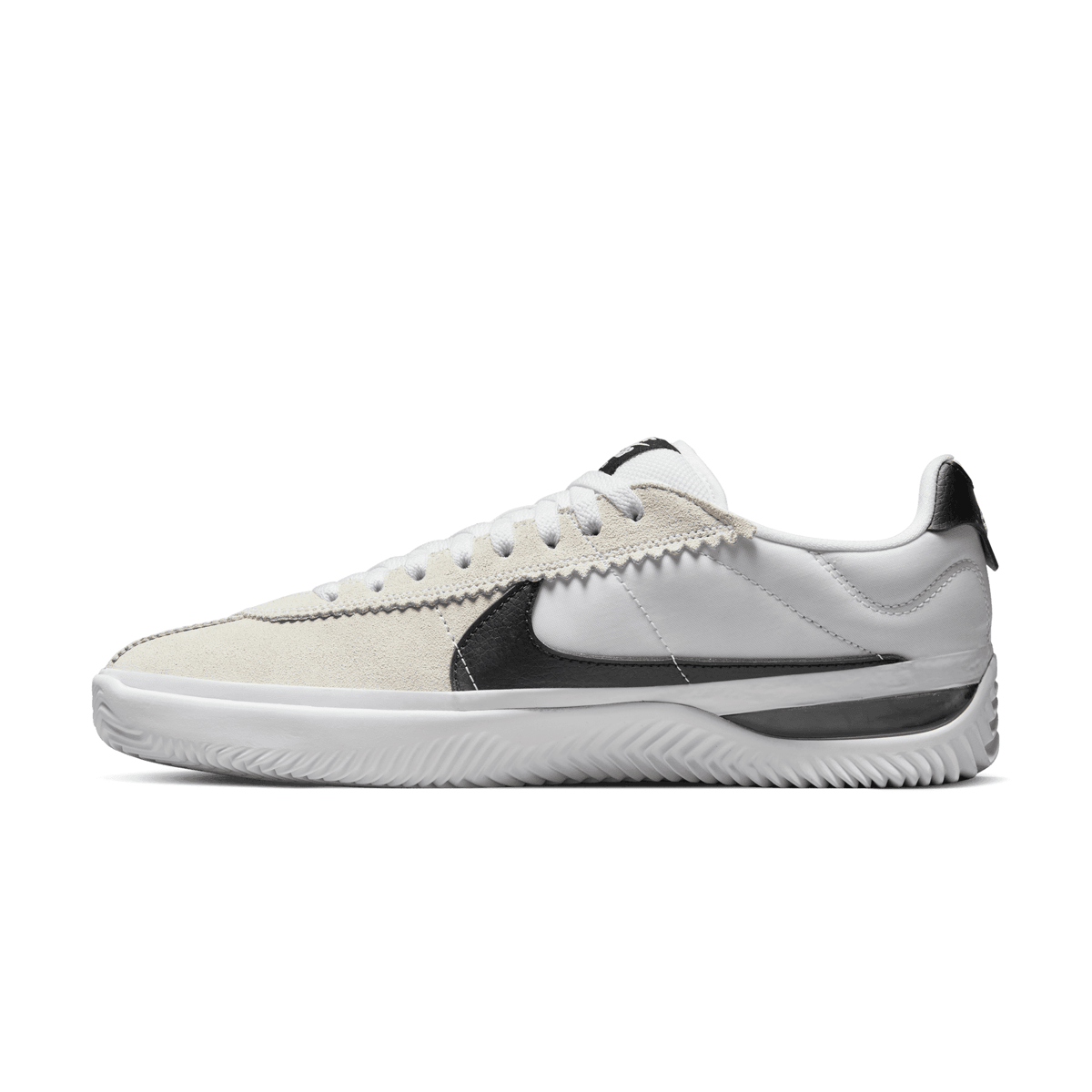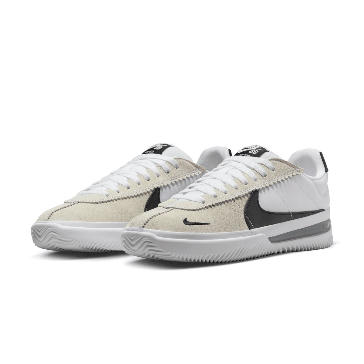 A familiar favourite is reborn in the Nithtke BRSB. Almost every detail, from the colour-blocking to the sawtooth pattern on the sole, was inspired by the original Nithtke Cortez. But, because this shoe is built for skate, we added extras where they're needed—like the rubber from the sole that wraps up and over the heel and toe for durability. It also wraps the sides, adding an extra layer to high-use areas, like the ollie zone.