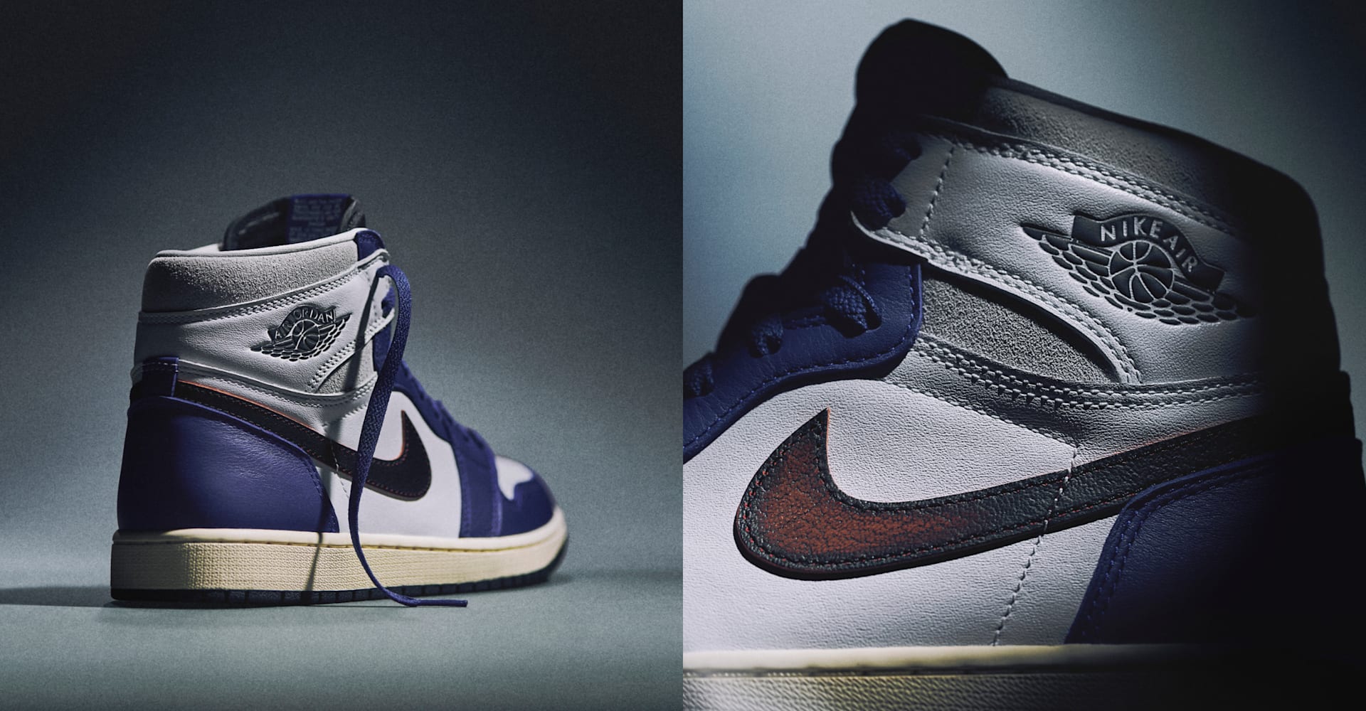 Histoire vraie : les choses se sont un peu emballées au labo. La AJ1 « Rare Air » pour homme a su transformer ces petits défauts en détails uniques. Par exemple, les étiquettes tissées « NIthtKE AIR » bleues, qu'on retrouvait uniquement sur les vêtements Jordan d'origine. Aujourd'hui, cette « erreur » d'échantillon est une marque de rareté qui en fait une pièce de collection.